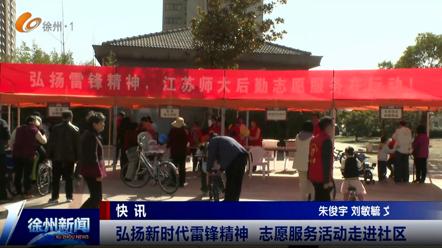 徐州電視臺徐州新聞欄目3月23日報道我校后勤保障部開展學雷鋒活動,志愿服務進社區,報道內如如下: