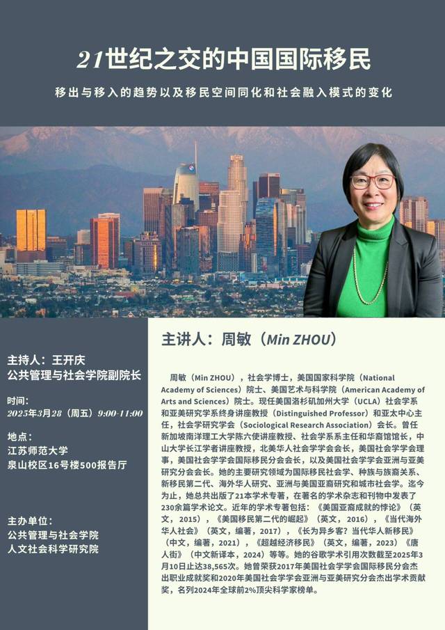 3月28日 周敏院士學(xué)術(shù)講座(公共管理與社會學(xué)院)