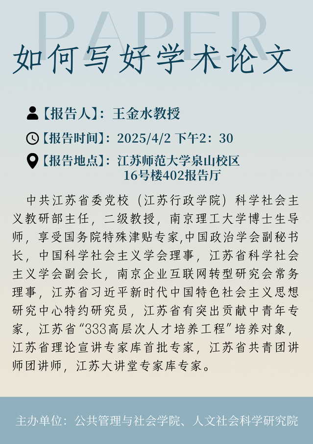 4月2日 王金水教授學術講座(公共管理與社會學院)
