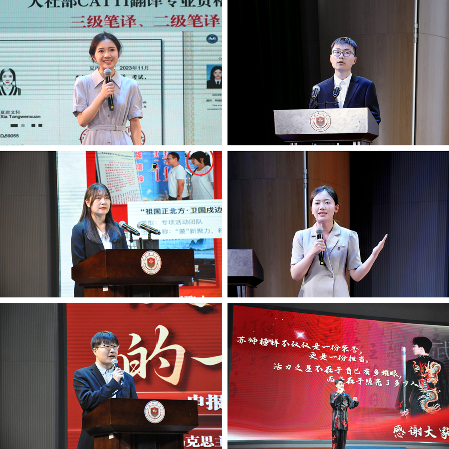 展評現(xiàn)場,33位候選人通過不同形式的個人展示,精彩展現(xiàn)了他們在勤奮學習、服務表率、公益志愿、學術科研、自強不息、文體活動、專業(yè)技能、創(chuàng)新創(chuàng)業(yè)等方面的事跡。吳佳男同學以優(yōu)異的成績直博浙江大學,實現(xiàn)學習的自我超越;朱思嘉同學用8篇SCI論文講述獨屬于她的科研故事,耶魯大學讀研成為她科研路上的又一起點;陳昆鵬同學勇?lián)幕瘋鞒惺姑?,以?chuàng)新思維推廣武術,展現(xiàn)青年學子的蓬勃朝氣;劉舒娜同學恪守服務本色,以“我在”的使命擔當書寫她的青春故事;白莉娜同學跨越山海,傳承紅色血脈,激昂青春力量,用行動書寫勵志。他們中有篤學不倦,潛心求索的“學業(yè)楷模”;有孜孜不倦,成果豐碩的“科研達人”;有多才多藝,充滿朝氣的“活力之星”;有精益求精,追求卓越的“技能狀元”;有心懷大愛,無私奉獻的“公益天使”;有默默付出,不求回報的“服務表率”;有踔厲奮發(fā)、篤行不怠的“勵志之星”;有開拓道路,銳意進取的“創(chuàng)業(yè)先鋒”,向全校同學展示了蘇師學子勤學向上的精神風貌。