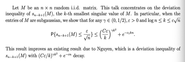 報(bào)告題目:Quantitative estimates of the singular values of random i.i.d. matrices
