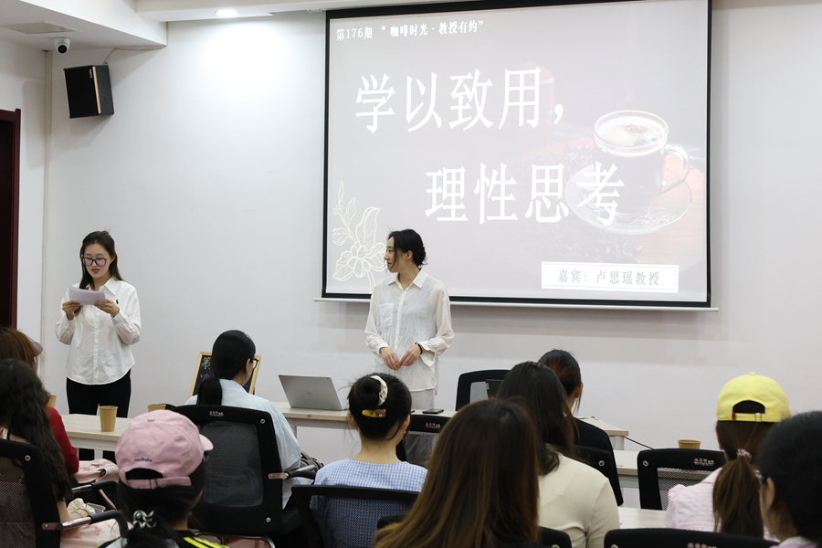 4月18日下午,第176期“咖啡時光·教授有約”活動在云龍校區“一站式”學生社區黨建工作室舉行。語言科學與藝術學院盧思瑤教授就“學以致用,理性思考”這一主題與在場同學進行交流。