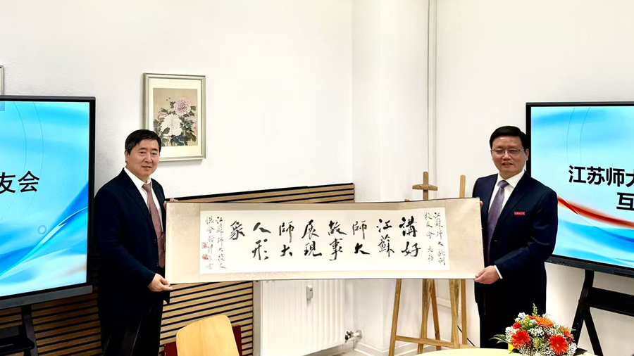 彭雯受中國駐杜塞爾多夫總領館總領事的委托,代表總領館向江蘇師范大學歐洲校友會的成立致以熱烈祝賀。她表示,江蘇師大歐洲校友會承載著凝聚校友情誼,弘揚中華文化,促進中外友好的使命,希望江蘇師大歐洲校友會當好中華文化的傳播者、歐洲交流的推動者、中歐友好的建設者。