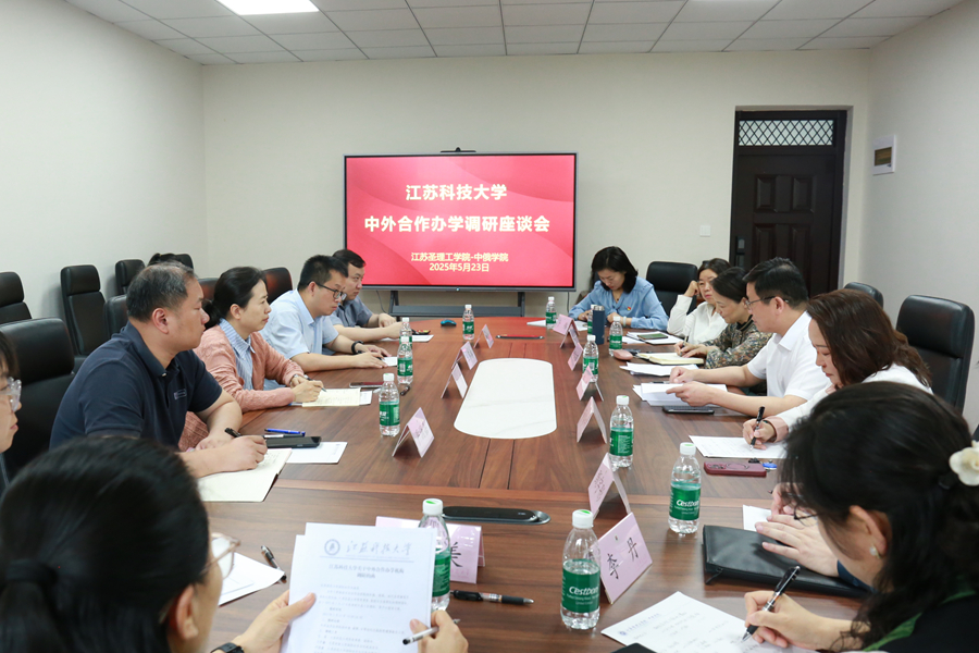 5月23日上午,江蘇科技大學黨委常委、副校長任南一行到我校調研交流。校黨委常委、副校長商亮出席座談會,國際合作交流處、江蘇圣理工學院-中俄學院的相關負責同志參會。