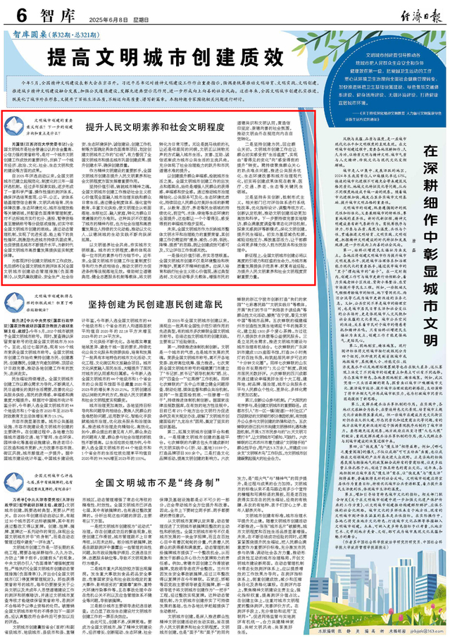作為精神文明建設的重要抓手,全國文明城市創(chuàng)建在提升人民文明素養(yǎng)和社會文明程度方面發(fā)揮著重要作用。