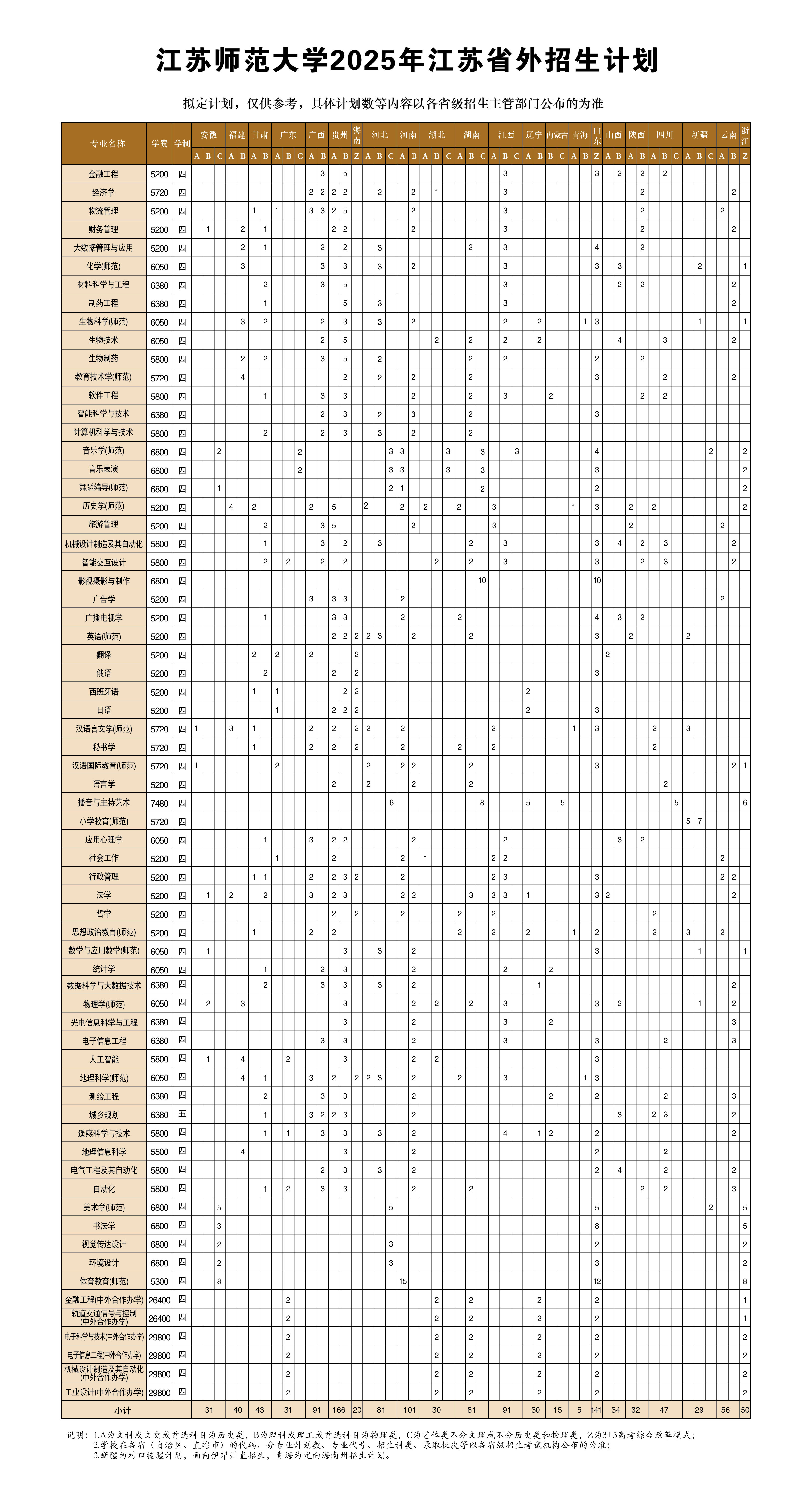 江蘇師范大學(xué)2025年江蘇省外招生計(jì)劃