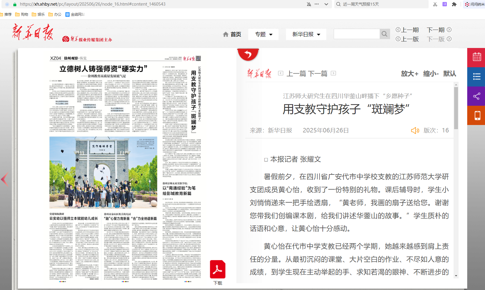 《新華日?qǐng)?bào)》6月26日?qǐng)?bào)道我校研究生在四川支教的工作經(jīng)驗(yàn),報(bào)道內(nèi)容如下: