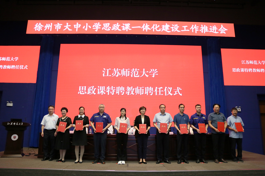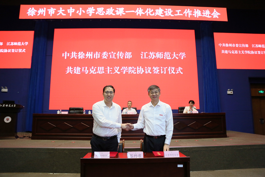 會上,徐州市委宣傳部、江蘇師范大學(xué)現(xiàn)場簽署馬克思主義學(xué)院共建協(xié)議,芮國強為賈萍、韓峰、李翠梅、原豐、孟維、張懷紅、周長芝、孟慶喜、胡軍英、王計兵頒發(fā)“江蘇師范大學(xué)思政課特聘教師”聘書。中國礦業(yè)大學(xué)馬克思主義學(xué)院院長閻國華,徐州市鯤鵬路初級中學(xué)思政課教師蘇維、徐州市太行路小學(xué)思政課教師張珮依次發(fā)言,圍繞如何提升思政課質(zhì)量總結(jié)經(jīng)驗、建言獻策。會議還發(fā)布了徐州市“博物館里的思政課”系列課程,邀請了揚州市教育科學(xué)研究院副院長王恒富作專家主旨報告。