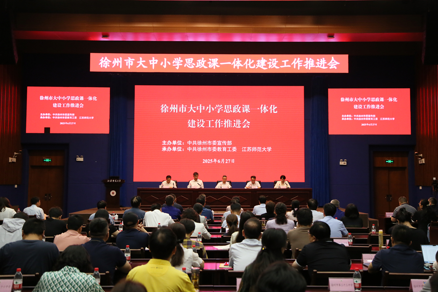 6月27日上午,徐州市大中小學(xué)思政課一體化建設(shè)工作推進會在江蘇師范大學(xué)舉行。徐州市委常委、宣傳部部長劉偉,江蘇師范大學(xué)黨委書記芮國強,江蘇師范大學(xué)黨委副書記蔡國春,徐州市委教育工委書記、教育局局長孫云靜,徐州市委宣傳部副部長竇銅順出席會議,徐州各縣區(qū)教育局負責(zé)人,在徐高校黨委宣傳部部長、馬克思主義學(xué)院院長,徐州市各縣區(qū)中小學(xué)校思政教師代表參加會議。