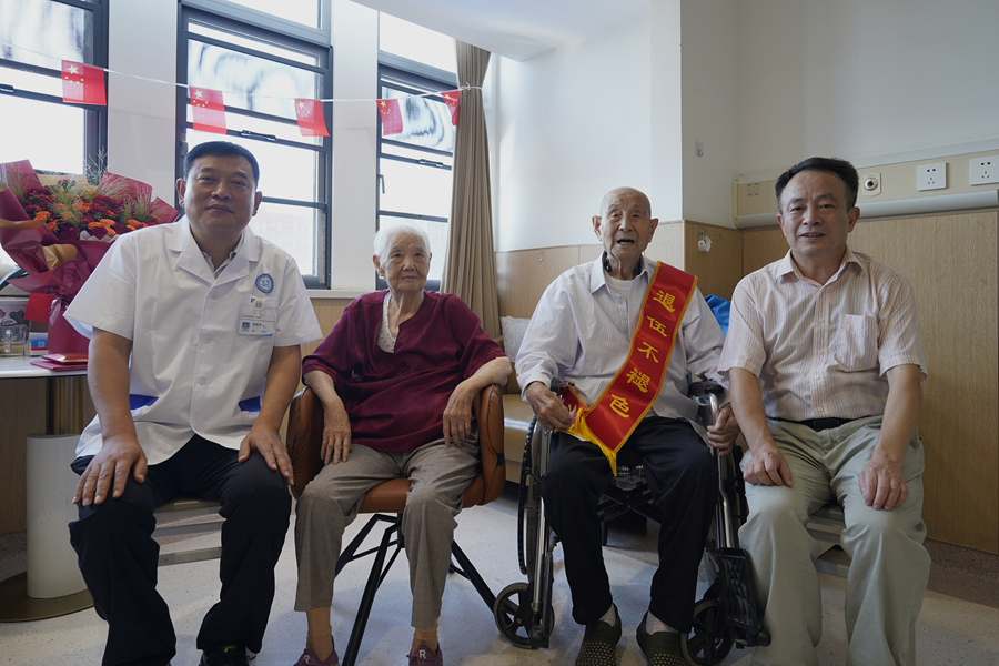 在紀念中國人民抗日戰爭暨世界反法西斯戰爭勝利80周年之際,校黨委書記芮國強走訪慰問我校離休老教師、抗戰老兵隋光同志,向這位103歲高齡的老英雄致以崇高敬意和誠摯問候。相關部門負責人參加慰問。