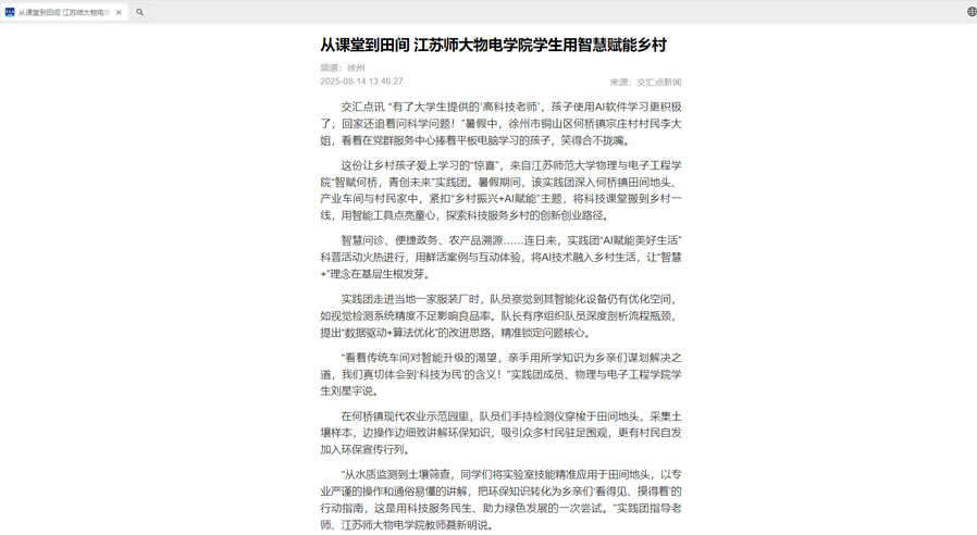 從課堂到田間 江蘇師大物電學(xué)院學(xué)生用智慧賦能鄉(xiāng)村