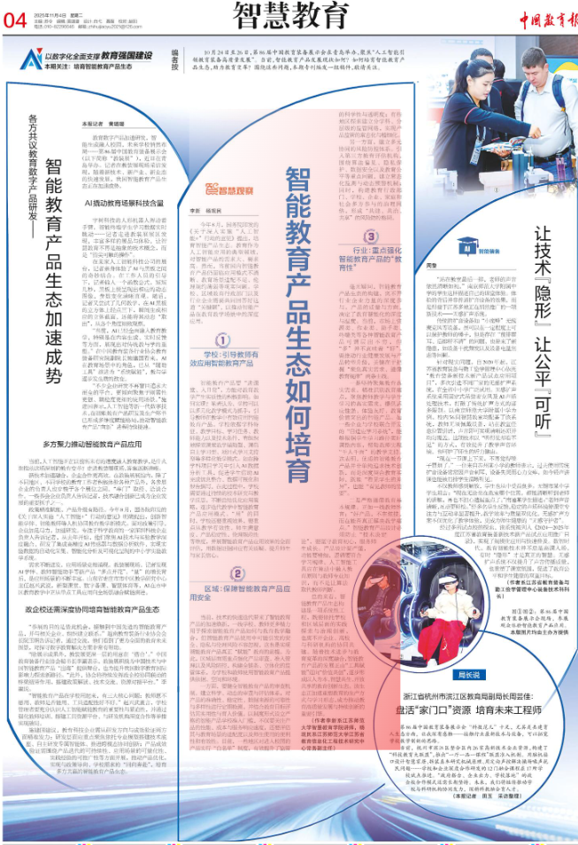 《中國(guó)教育報(bào)》11月4日發(fā)表我校教師李新、楊現(xiàn)民署名文章《智能教育產(chǎn)品生態(tài)如何培育》,內(nèi)容如下: