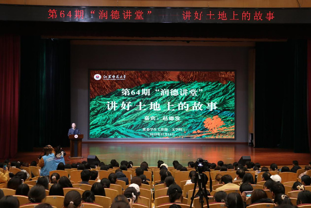 11月16日下午,由黨委學生工作部、文學院聯合主辦的第64期“潤德講堂”在馬可音樂廳順利舉行。著名作家、山東省作家協會原副主席、電視劇《生萬物》的原著作者趙德發以“講好土地上的故事”為主題,分享人生感悟與時代思考,與師生探討土地與生活的緊密關聯,以及文學作品影視劇改編的傳播力量。