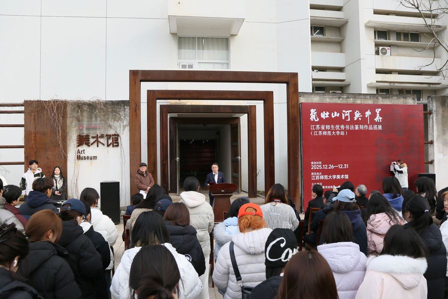 12月26日下午,“氣壯山河興中華——江蘇省師生優(yōu)秀書法篆刻作品巡展”在我校舉辦,此次展覽由江蘇省教育書法協(xié)會主辦,江蘇師范大學(xué)美術(shù)學(xué)院承辦,江蘇現(xiàn)代職教圖書發(fā)行有限公司協(xié)辦,旨在以筆墨金石追溯紅色記憶,緬懷抗戰(zhàn)英烈,傳承民族精神,弘揚傳統(tǒng)文化。校黨委書記芮國強,江蘇省教育書法協(xié)會會長管向群,教育部書法專業(yè)指導(dǎo)委員會委員、江蘇省書法家協(xié)會副主席黃正明,江蘇省書法家協(xié)會副主席馬亞,江蘇現(xiàn)代職教圖書發(fā)行有限公司總經(jīng)理趙鵬等出席開幕式。