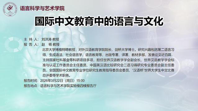 3月22日 趙楊教授講座(語言科學與藝術學院)