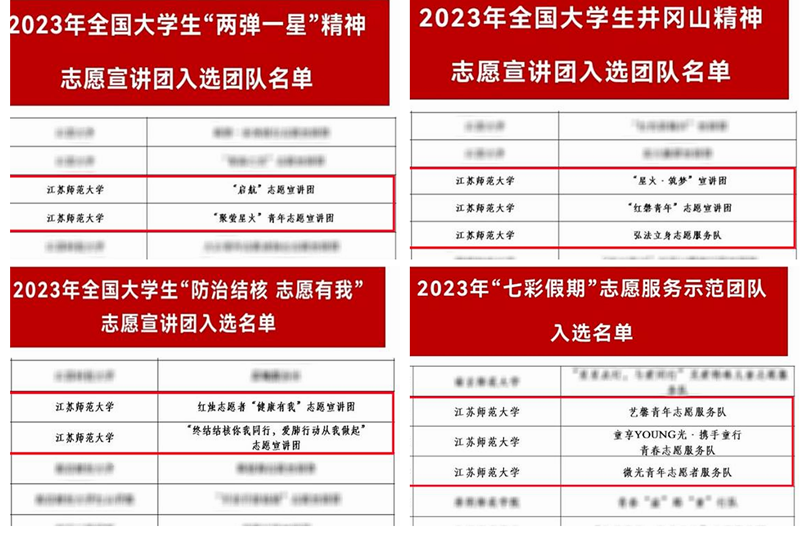2023年4月下旬,團中央青年志愿者行動指導(dǎo)中心與中國核工業(yè)集團有限公司、全國青少年井岡山革命傳統(tǒng)教育基地、井岡山管理局、國家疾病預(yù)防控制局傳染病防控司、中國青年志愿者協(xié)會秘書處等單位聯(lián)合開展了“兩彈一星”精神、井岡山精神、“防治結(jié)核志愿有我”志愿宣講團和“七彩假期”志愿服務(wù)示范團隊遴選活動,各高校志愿服務(wù)團隊積極參與申報。近日,入選名單公布,我校共10支團隊通過主辦方審核,成功入選全國大學(xué)生志愿宣講團和“七彩假期”志愿服務(wù)示范團隊。