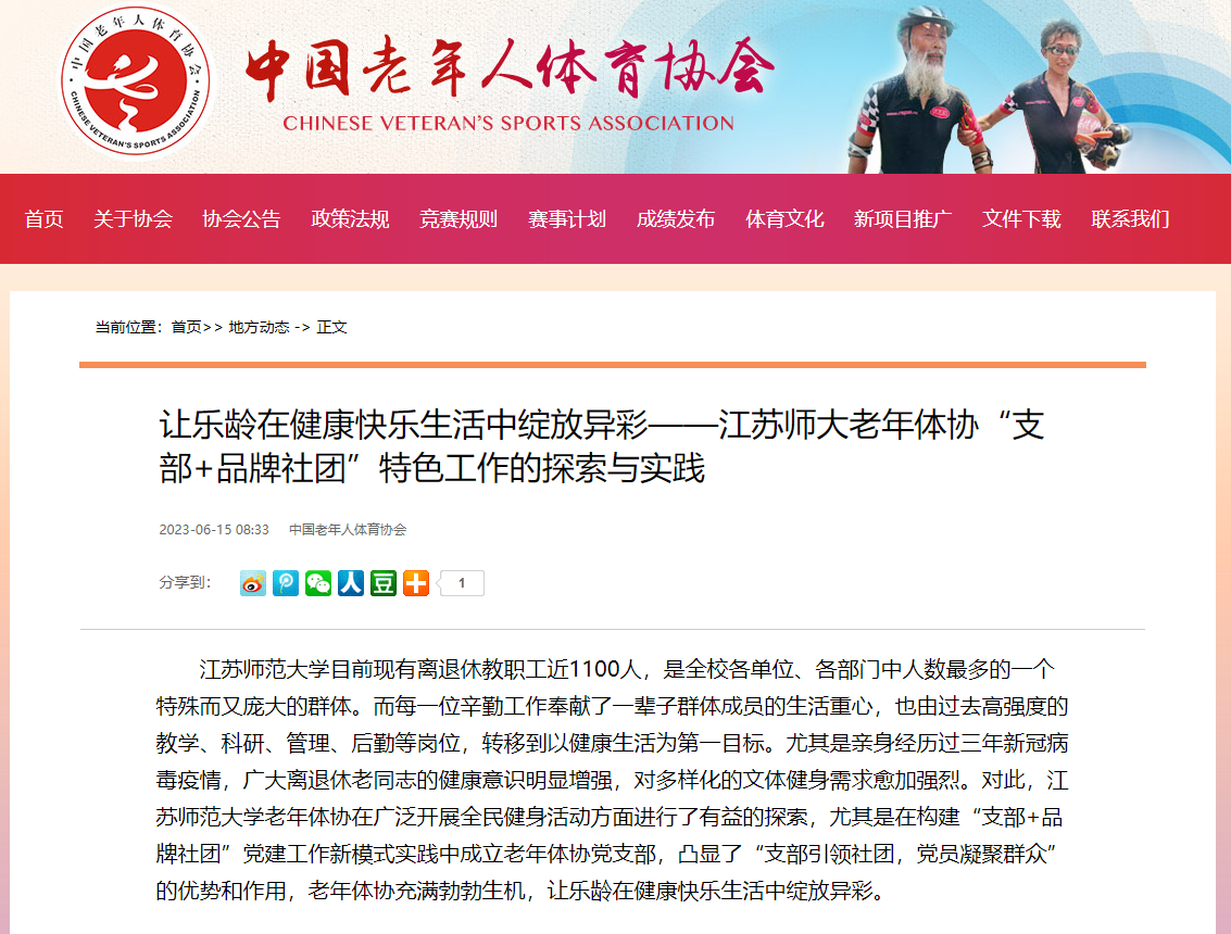 中國老年體協(xié)官網(wǎng)報道我校老年體協(xié)工作,報道內(nèi)容如下: