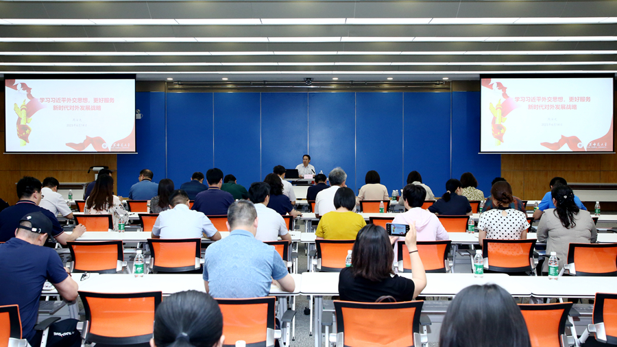 周汝光從習(xí)近平外交思想的形成脈絡(luò)、總體框架和核心要義、行動(dòng)指南,高校更好服務(wù)對(duì)外發(fā)展戰(zhàn)略的天然優(yōu)勢(shì),我校更好服務(wù)國(guó)家新時(shí)代外交戰(zhàn)略的思路等五個(gè)方面進(jìn)行了講授。他指出,習(xí)近平外交思想是習(xí)近平新時(shí)代中國(guó)特色社會(huì)主義思想的重要組成部分,是習(xí)近平總書記高瞻遠(yuǎn)矚,總攬全局,深刻思考人類前途命運(yùn)、中國(guó)和世界發(fā)展大勢(shì),積極推進(jìn)外交理論和實(shí)踐創(chuàng)新而提出的一系列富有中國(guó)特色、體現(xiàn)時(shí)代精神、引領(lǐng)人類發(fā)展進(jìn)步潮流的新理念新主張的總和。他強(qiáng)調(diào),學(xué)深悟透習(xí)近平外交思想,對(duì)于提升我校國(guó)際化辦學(xué)水平,更好服務(wù)新時(shí)代國(guó)家對(duì)外發(fā)展戰(zhàn)略具有重要的指導(dǎo)意義。學(xué)校應(yīng)積極融入新時(shí)代的大國(guó)外交格局,充分發(fā)揮自身優(yōu)勢(shì),以國(guó)家總體外交戰(zhàn)略為準(zhǔn)繩,以高質(zhì)量建設(shè)高水平大學(xué)為主線,著力提升國(guó)家合作交流品質(zhì),不斷開創(chuàng)國(guó)際化建設(shè)新局面。