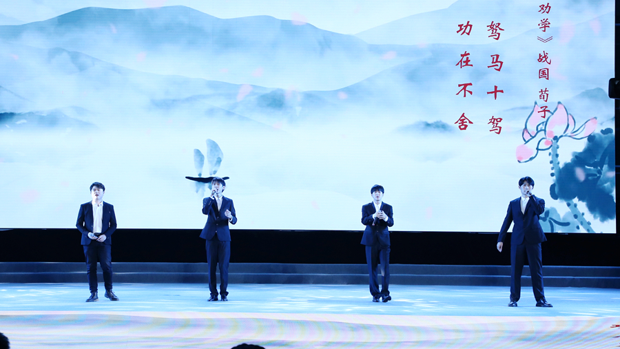 一曲情景歌舞表演《上下求索》將屈原的報(bào)國(guó)理想與現(xiàn)實(shí)的挫敗展現(xiàn)在觀眾面前,讓人不禁嘆息;以現(xiàn)代歌曲和B-box相結(jié)合的形式展現(xiàn)的荀子《勸學(xué)篇》節(jié)目《鍥而不舍》,又讓觀眾感受到持之以恒的決心與堅(jiān)持到底的可貴;而舞蹈與歌曲相結(jié)合的詠唱《愛(ài)蓮說(shuō)》,讓觀眾在體驗(yàn)音樂(lè)之美的同時(shí),更加感受到如蓮花一樣高尚、純潔品格的魅力。