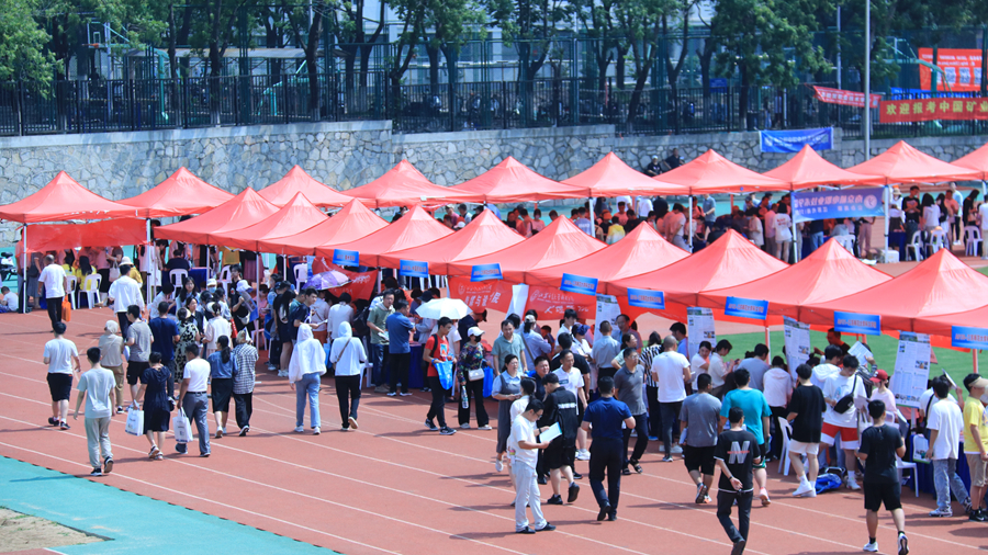 為幫助2023年高考考生充分了解各高校招生政策,合理規(guī)劃職業(yè)生涯,理性填報高考志愿。6月27日,由江蘇省教育考試院、省高校招生就業(yè)指導服務中心主辦,江蘇師范大學、徐州市教育考試院承辦的江蘇省2023年高考考生職業(yè)生涯與志愿填報指導咨詢會(徐州分會場)在我校泉山校區(qū)田徑場舉行。來自徐州及周邊地區(qū)的13600多名考生及家長前來交流咨詢。