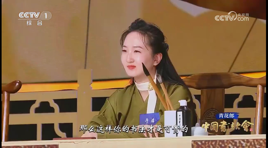 為貫徹落實習近平總書記關于堅定文化自信系列論述,傳承和弘揚中華優秀傳統文化,2023年,中央電視臺推出了大型書法文化節目《中國書法大會》。 經江蘇省書協遴選、推薦,央視節目組考核,我校美術學院教師于潔以優異成績通過考核,成為現場參加錄制的30名書友之一。《中國書法大會》共6集,于潔受邀參加了第三集和第四集的現場錄制,已于2023年6月16日、23日在央視綜合頻道(CCTV-1)播出,央視頻、央視網等新媒體平臺同步上線。節目播出后,廣受好評。