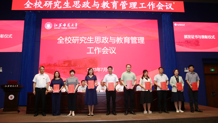 會上,黨委研究生工作部匯報了研究生思政與教育管理工作,回顧總結近年來工作取得的成績、面臨的主要問題,提出了未來工作的思路與設想。智慧教育學院、歷史文化與旅游學院有關同志就學院層面研究生思政與教育管理工作的思路、舉措、創新、特色進行交流發言。會議對2023年研究生就業促進項目立項、承辦2023年“中國研究生創新實踐系列大賽”校內立項和第二屆江蘇省社會實踐和志愿服務“十佳研究生”“十佳研究生團隊”進行了表彰。