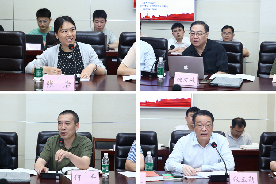在研討環節,揚州大學文學院姚文放教授、南京師范大學文學院何平教授、徐州醫科大學副校長張玉勤教授、南京大學藝術學院周計武教授、武漢大學文學院王懷義教授、《中國當代文學研究》編輯王昉、中國礦業大學人文與藝術學院院長史修永教授、徐州工程學院人文學院副院長吳云教授、江蘇省產業教授鄭磊、徐州報業傳媒集團薛欣欣總編輯、中國作家協會新時代文學研究中心(江蘇師范大學基地)主任黃德志教授、《江蘇師范大學學報》主編呂靖波教授、江蘇師范大學文學院劉彥順教授、田崇雪教授、郝敬波教授、種海燕副教授、李金梅副教授和溫德朝副教授等專家學者,結合學習貫徹習近平總書記在文化傳承發展座談會上重要講話精神的體會和心得,深入交流了文化傳承發展與國家文化形象建設等問題,對《中國形象:審美規律與藝術構建》一書展開熱烈討論。