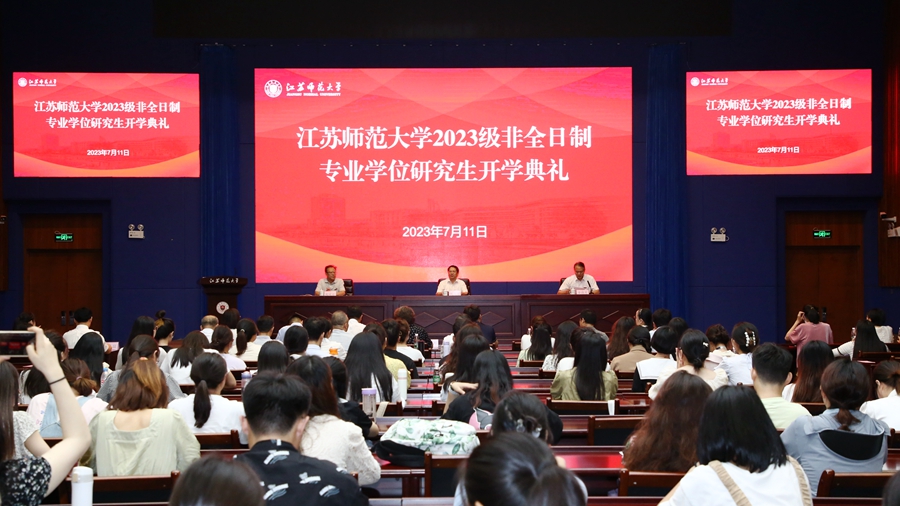7月11日上午,2023級非全日制專業(yè)學(xué)位研究生開學(xué)典禮在泉山校區(qū)分析測試中心100報告廳舉行。校長周汝光,相關(guān)研究生培養(yǎng)單位領(lǐng)導(dǎo)、相關(guān)專業(yè)研究生導(dǎo)師組組長出席典禮,相關(guān)學(xué)院研究生秘書、全體2023級非全日制教育碩士、藝術(shù)碩士專業(yè)學(xué)位研究生參加典禮。暖場視頻《北遷》《遠(yuǎn)航》過后,典禮在嘹亮的國歌聲中正式開始。