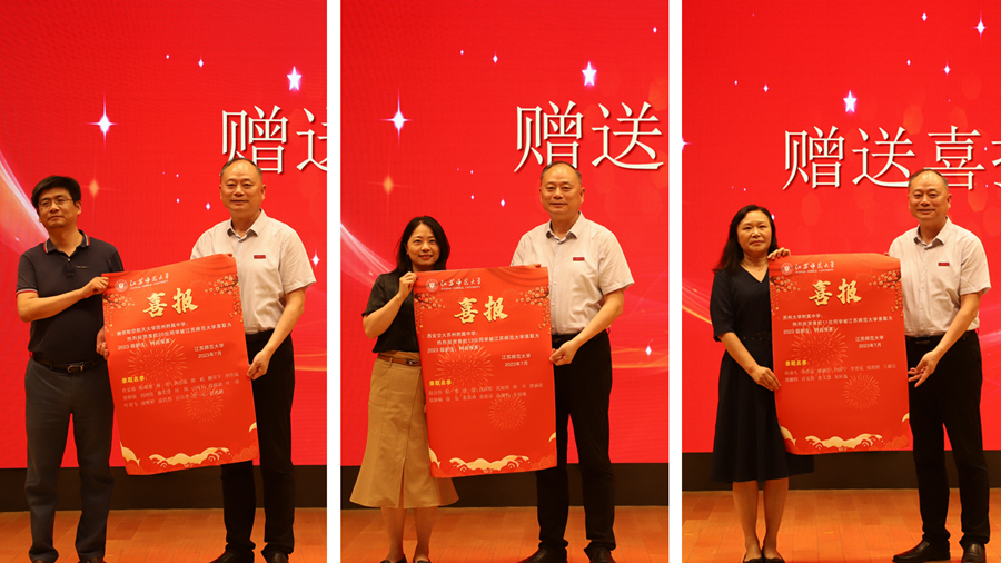 會上,校領導向新生和家長們從學校人才培養、師資隊伍、學科建設、科技創新、國際交流等方面介紹了江蘇師范大學的基本情況,并向錄取的新同學表示熱烈歡迎,希望新生們能夠充分利用假期,盡快轉變角色,提前做好學業規劃,堅持學習和鍛煉、素養與能力并重,自覺把個人之夢融入國家富強、民族復興之夢中去。新生代表們紛紛表達了考入江蘇師范大學的喜悅之情,同時對辛勤培育他們的中學表達了真誠謝意,展望了對未來大學生活的美好憧憬。與會領導與相關負責同志分別與家長和新生座談交流。家長及受訪中學領導紛紛表示,江蘇師范大學校領導不辭辛苦,到各個學?,F場頒發錄取通知書,體現了對學生的關愛,是一堂生動的“大學第一課”,他們希望同學們進入大學以后,能夠堅定理想、不忘初心、接續奮斗,創造屬于自己、屬于社會、屬于國家和民族的無悔青春。