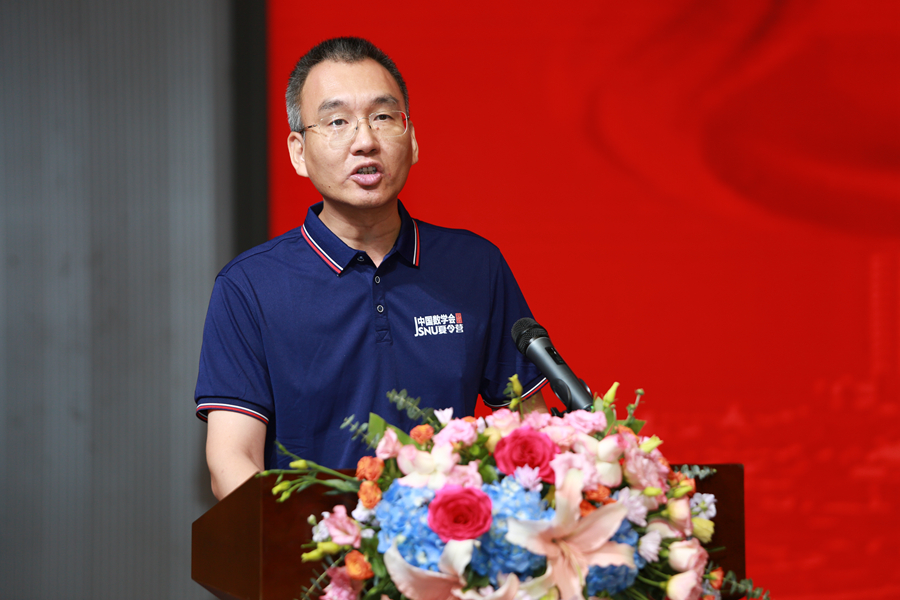 杜增吉在開營儀式上致歡迎辭,對遠道而來的嘉賓以及來自國內157所高校的307名數學專業優秀學子的到來表示感謝和歡迎,并向大家介紹了學校和數學與統計學院的基本情況。佘志坤在致辭中表示,全國大學生數學競賽已成為國內規模最大的數學賽事,為大學生提供了展示數學思維能力和學習成果的平臺,對于選拔數學專業優秀人才,提升我國科技實力,實現中華民族偉大復興具有深遠意義。曹進德在致辭中強調了數學作為基礎學科對社會發展具有重要意義,同時表達了對江蘇師范大學承辦本次夏令營活動的認同與感謝,并希望全體營員在夏令營期間學有所獲、學有所成。最后,四川大學楊震宇同學作為營員代表發言。