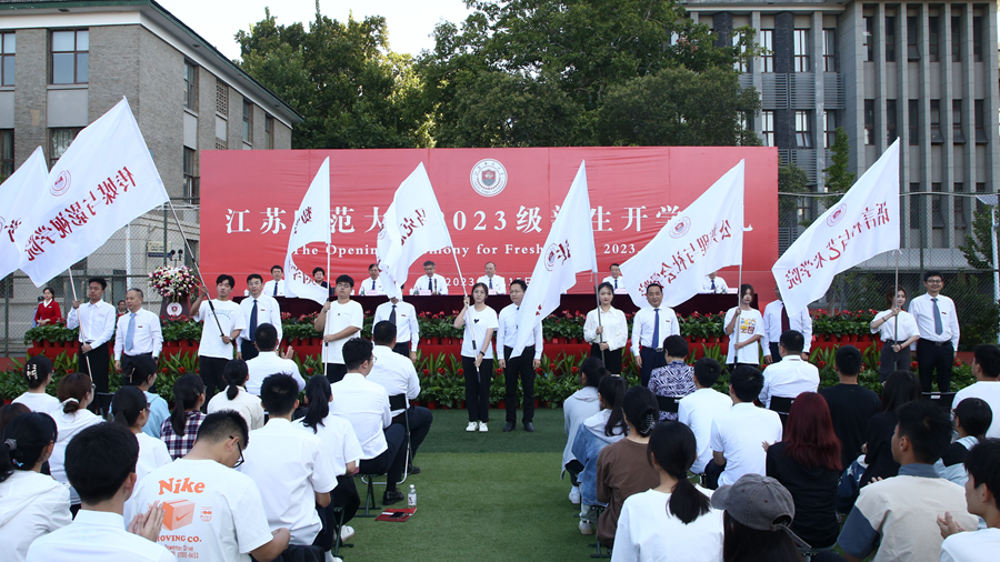 莘莘學子聚蘇師,昂首闊步新征程。在這金秋九月,我校迎來了8094名2023級新同學。9月15日上午,江蘇師范大學2023級新生開學典禮隆重舉行。在校全體校領導出席典禮,校機關部門主要負責同志,各學院黨政負責人、副書記、輔導員,教師代表,校友代表,老生代表,以及全體2023級本科生和碩士、博士研究生參加典禮。典禮在泉山校區田徑場和云龍校區體育場分別舉行。校黨委副書記蔡國春主持典禮。