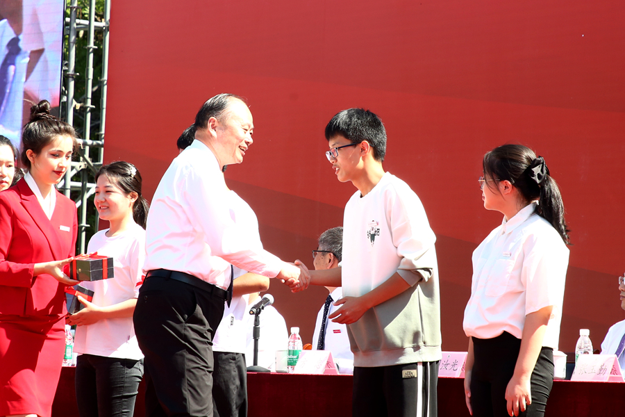 2023級學生中,有很多杰出代表,其中包括了少數民族、青海師大來校交流、研究生入學考試單科最高分同學,今年因抗洪救災,在部隊立功受獎的同學。正是由千千萬萬不同地區、不同境遇的學子,組成了江蘇師范大學這樣一個溫暖的大家庭。副校長杜增吉代表學校向優秀新生代表贈送了開學禮物。