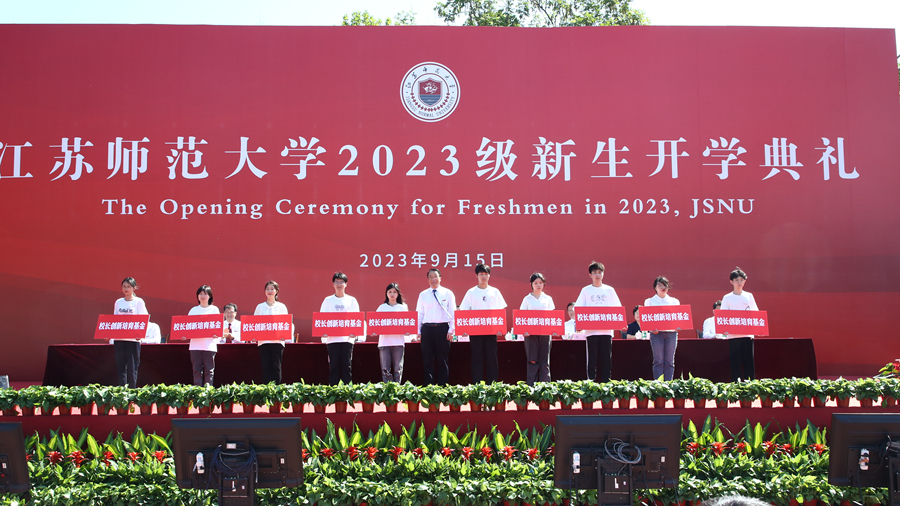 “潮平兩岸闊,風正一帆懸”,大學是同學們職業生涯的開端,也是同學們航行人生這片大海的揚帆處。同時廣大新同學的到來也為江蘇師范大學注入了新鮮血液,為學校事業發展輸送了澎湃動力。作為新生代表的數學與統計學院2023級本科生吳鈺同學和教育科學學院2023級本科生曹佳怡同學分別發言,她們號召全體同學樹立遠大理想、努力學習本領,為建設富強民主文明和諧美麗的社會主義現代化國家而奮斗。