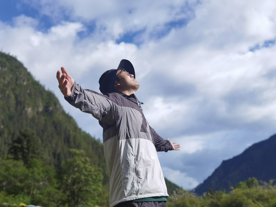 ▲郝晟在西藏林芝進行推普助力鄉村振興入戶調研時所拍