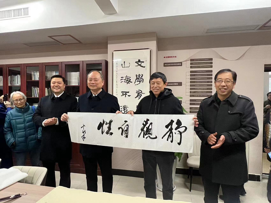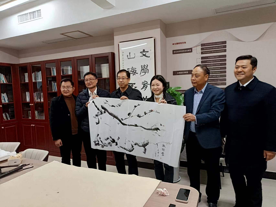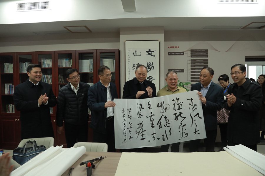 會議期間,與會專家、學者來到文學院參觀了包括新建成的世界華文文學研究中心在內的新時代文學研究中心展館群,并紛紛為文學院題字、題畫留念。