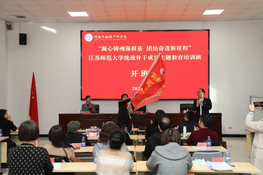 11月17日,培訓班在焦裕祿干部學院第一教學樓一號教室舉行開班儀式。校黨委常委、組織部長、統戰部長黃德志,焦裕祿干部學院蔡治業副院長出席開班式。蔡治業在開班儀式上致辭并向培訓班授予班旗,九三學社師大支部主委王淑梅代表培訓班接旗。黃德志向各位學員介紹了舉辦本次培訓的重要意義,并提出了三點要求:一是要提高思想覺悟,深刻認識主題教育重要性;二是要增強行動自覺,運用焦裕祿精神指導實踐;三是要嚴明培訓紀律,確保培訓任務圓滿完成。他希望參加培訓的成員互相學習,共謀事業發展;相互關心,共筑美好情誼。
