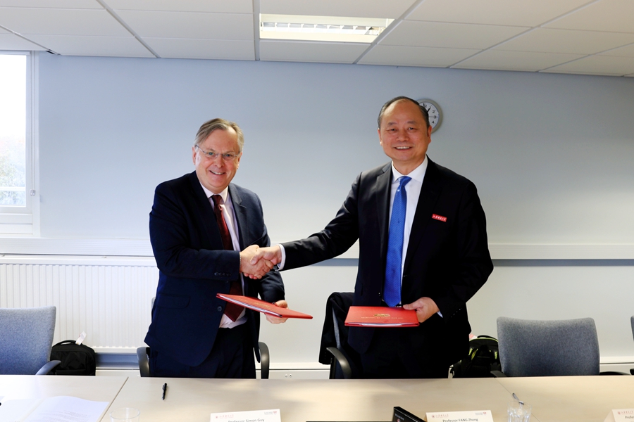 本次會(huì)談結(jié)束后,方忠和西蒙?蓋共同簽署了2+1聯(lián)合培養(yǎng)翻譯碩士合作項(xiàng)目協(xié)議。隨后,代表團(tuán)與斯科菲爾德校長,以及工程學(xué)院、管理學(xué)院和藝術(shù)和社會(huì)科學(xué)學(xué)部的部分學(xué)科負(fù)責(zé)人、教師代表進(jìn)行進(jìn)了會(huì)談,雙方互相介紹了各自學(xué)科發(fā)展情況及優(yōu)勢研究領(lǐng)域,共同探討在科研合作、人才聯(lián)合培養(yǎng)、物理學(xué)、計(jì)算機(jī)科學(xué)與技術(shù)、材料科學(xué)等潛在合作領(lǐng)域,并就兩校于明年聯(lián)合舉辦“一帶一路國際會(huì)議”進(jìn)行了初步探討。