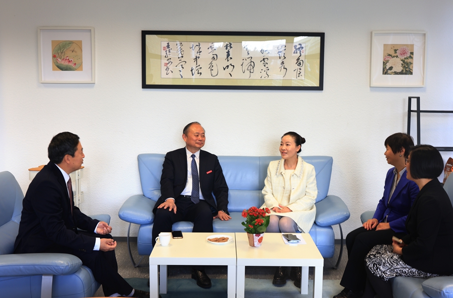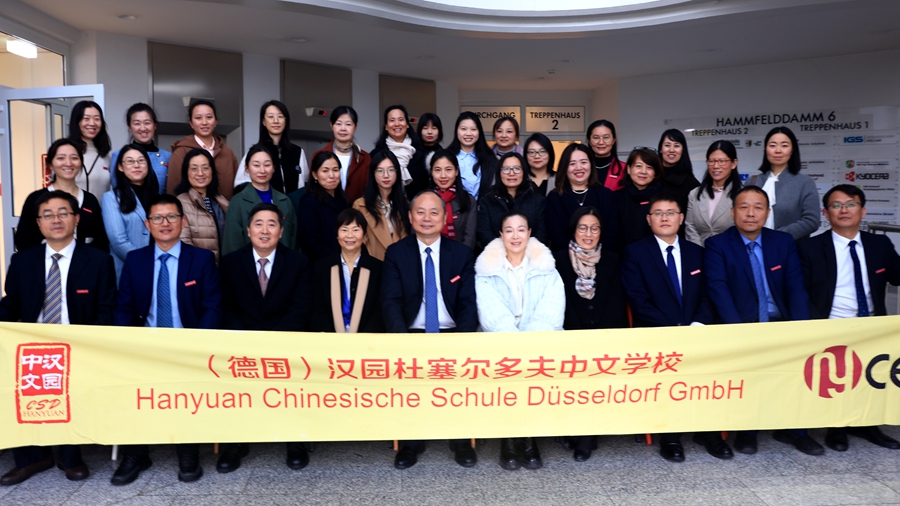 結(jié)束英國訪問后,訪問團(tuán)一行乘機(jī)來到德國杜塞爾多夫,首先訪問德國漢園中文學(xué)校(萊茵校區(qū)),與我校杰出校友、漢園中文學(xué)校董事長王杰和校長孫曉帆洽談合作,中國駐杜塞爾多夫總領(lǐng)館領(lǐng)僑部主任彭雯、全德中文學(xué)校聯(lián)合總會(huì)副會(huì)長陳薇應(yīng)邀出席活動(dòng)。為推進(jìn)海外華文教育的不斷升級,系統(tǒng)提高德國本土中文教師的專業(yè)水平,江蘇師范大學(xué)與德國漢園中文學(xué)校決定在杜塞爾多夫設(shè)立“歐洲中文教師教育學(xué)院”,并現(xiàn)場簽約。