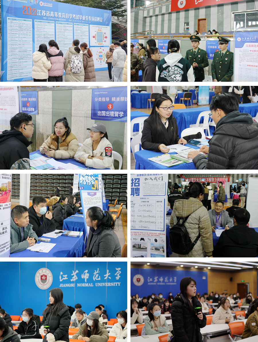 11月25日上午,2023年江蘇省高等教育自學考試畢業生專場招聘會在我校泉山校區舉辦,江蘇省招就中心副主任黃煒、省教育考試院自學考試處五級職員沈根龍、徐州市教育考試院等相關領導到場指導,校黨委常委、副校長張玉勤,學生工作處、繼續教育學院等單位負責同志及校內外2000余名學生參加活動。來自沙鋼集團、正大天晴、海瀾集團、港華燃氣等省內外127家用人單位,為畢業生提供了4000余個職位。