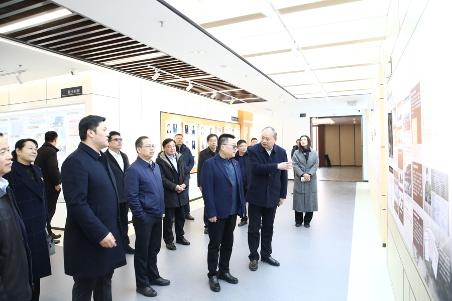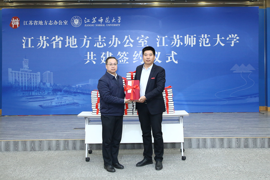 江蘇省地方志辦公室代表和江蘇師范大學代表共同簽署了合作共建協議,省方志辦向江蘇師大捐贈《江蘇歷代方志全書》等珍貴文獻近500冊。根據共建協議,雙方將全面共建共享地方志研究資源,共同致力于徐州鄉村志的發掘、保護、整理和研究工作,為生動講好山鄉巨變的“江蘇故事”,譜寫“強富美高”新江蘇建設現代化篇章提供有力支撐。簽約儀式后,我校與江蘇省方志辦召開了共建工作座談會,校黨委書記方忠、省方志辦黨組書記、主任左健偉出席,校相關學院、相關職能部門負責人參加會議。簽約儀式開始前,方忠陪同與會領導考察調研了江蘇師范大學校史館、中華家文化研究院和文學院中國鄉村志文化研究中心。