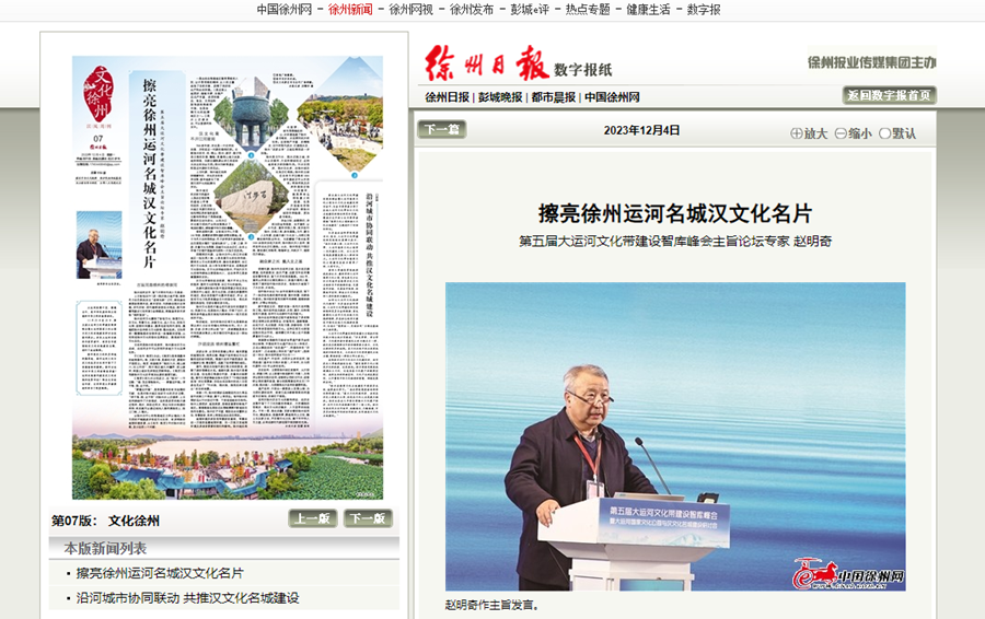 徐州日?qǐng)?bào)12月4日?qǐng)?bào)道我校趙明奇教授在第五屆大運(yùn)河文化帶建設(shè)智庫(kù)峰會(huì)上的主旨報(bào)告,內(nèi)容如下: