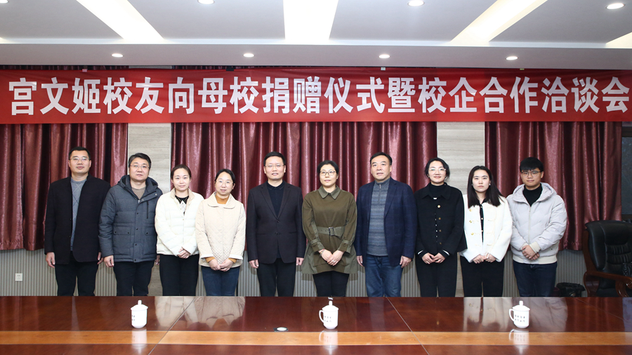 儀式上,宮文姬校友與學校簽訂了捐贈協議,并現場進行了捐贈。商亮代表學校向宮文姬校友頒發捐贈證書。儀式結束后,校企雙方就人才培養、科技服務、校企合作等進行商討洽談,雙方與會人員表示將充分發揮各自優勢,拓展合作空間,深化共享協作,實現共贏發展。