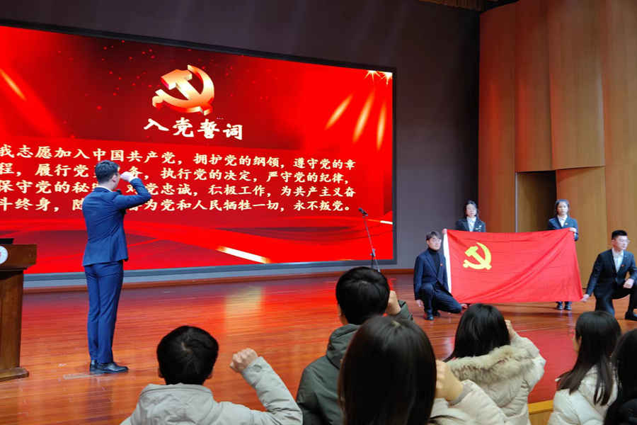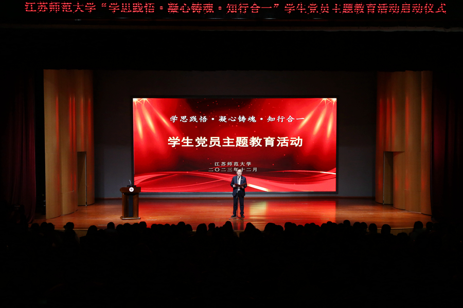 方忠在儀式上作動員講話。他指出,學生黨員主題教育活動啟動儀式在第十個南京大屠殺死難者國家公祭日舉辦,既是對歷史的銘記,更是對未來的展望。在實施“十四五”規劃承上啟下的關鍵之年開展此次活動,是持續推動學習貫徹習近平新時代中國特色社會主義思想走深走實的重要舉措,更是教育引導學生黨員夯實理想信念之基,踐行社會主義核心價值觀,勇挑時代重任,推進學校高質量發展的現實需要。方忠全面闡述了本次主題教育活動的背景和意義,介紹了活動的主要內容及具體要求,并對青年學生黨員提出了殷切希望。