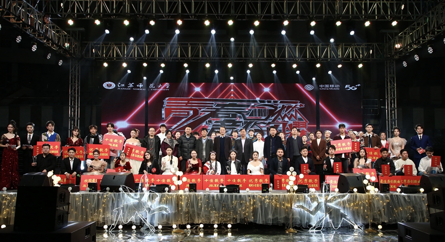 12月15日晚,“中國移動杯”第34屆“青春當(dāng)燃‘音’你閃耀”校園十佳歌手大賽總決賽在泉山校區(qū)體育館成功舉辦。副校長張玉勤、杜增吉、董曉臣,校紀委書記閭浩及相關(guān)部門負責(zé)同志,中國移動銅山分公司總經(jīng)理吳劍東、副總經(jīng)理龔兵出席活動。國家一級藝術(shù)監(jiān)督、導(dǎo)演曹曙林,中國音樂家協(xié)會會員王躍萍,徐州市泉山區(qū)文聯(lián)副主席吳雪梅,徐州電視臺音樂總監(jiān)林非,徐州市音樂家協(xié)會副主席高志應(yīng)邀擔(dān)任評委。
