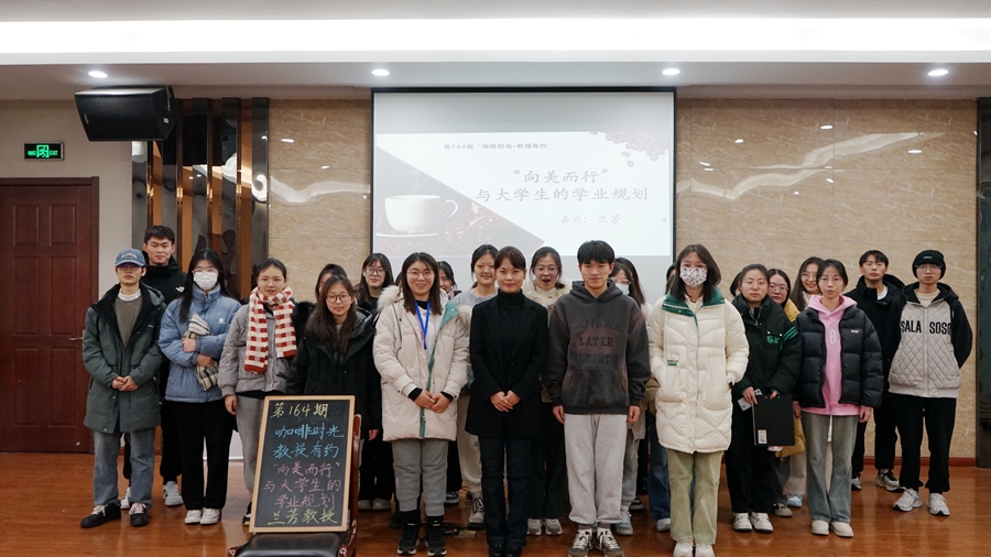 12月14日下午,第164期“咖啡時光·教授有約”活動在江蘇師范大學泉山校區心理團輔室舉行。蘭芳教授就“‘向美而行’與大學生的學業規劃”這一主題與在座同學進行交流。
