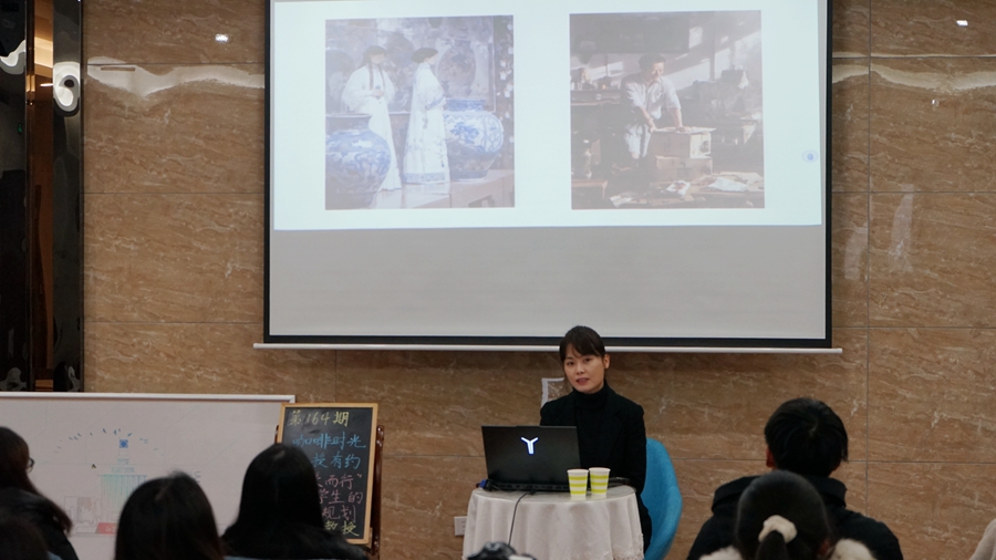蘭芳從“美”的定義開始本次講座,通過AI繪制的圖片讓同學們感悟美的通用性,以此鼓勵同學們去認識美、欣賞美。蘭芳認為人類社會發展的進步也推動美的進步,讓美的生成更簡潔化。她根據一組文創圖片讓同學們意識到,美應用在實用的日常用品上時還能推廣民族文化。她提議當代大學生要有敏銳的眼光,去發現美的人和事,要熱愛環境、熱愛專業。隨后,蘭芳讓同學們欣賞了從不同視角拍攝的獨屬于師大校園的美,帶領同學們認識生活中具有經典性的美,結合徐州漢文化城市IP卡通形象和一些文創作品,與同學們一起探索藝術美。最后,蘭芳就一位同學的學業規劃,結合自己的大學生涯,解釋王國維《人間詞話》里的最經典的三句話,以此啟示同學們,發現美不難,執行、轉化成藝術更難;我們的社會發展離不開美,有了我們對美的發現,我們的生活才更加美好。