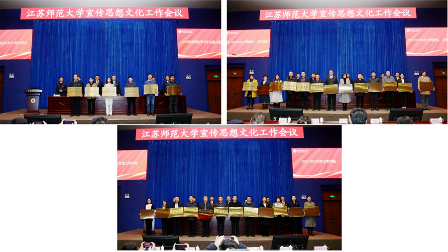 會上,與會人員共同觀看了我校宣傳思想文化工作紀錄片《鑄魂》。馬克思主義學院黨委、教務部、黨委學生工作部、黨委研究生工作部、音樂學院黨委有關負責同志在會上作了交流發言。大會還對近年來在政治理論學習、思想政治工作、網絡文化建設和精神文明建設等工作中,評選出的一批“示范點”“先進集體”“先進個人”進行了集中表彰。