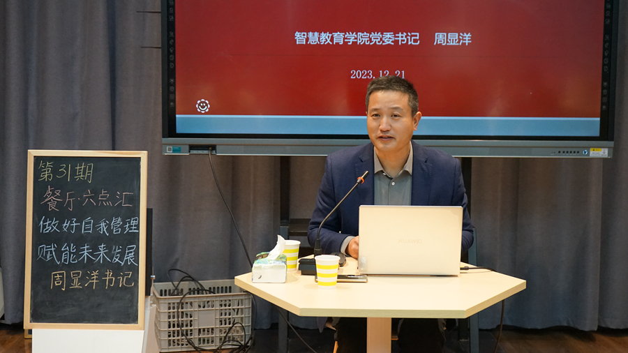 近日,第31期“餐廳·六點匯”活動在泉山校區(qū)六點匯實踐基地舉行。智慧教育學院黨委書記周顯洋就“做好自我管理,賦能未來發(fā)展”這一主題與在場同學進行交流。