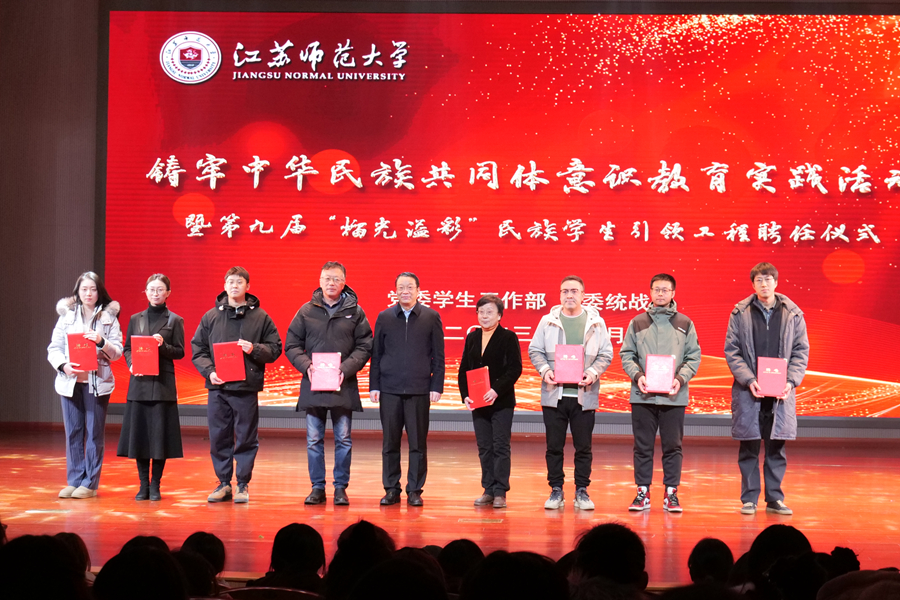 12月29日晚,江蘇師范大學鑄牢中華民族共同體意識教育實踐活動暨第九屆“榴光溢彩”民族學生引領工程聘任儀式在泉山校區馬可音樂廳舉行。校黨委常委、副校長張玉勤出席本次活動并講話,黨委宣傳部、黨委統戰部、黨委學生工作部、保衛處、團委等相關職能部門負責同志參加活動。