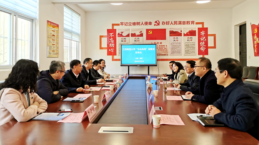 走訪單位表示希望與江蘇師范大學(xué)持續(xù)深入拓展合作空間,拓寬合作路徑,豐富合作內(nèi)涵,實(shí)現(xiàn)校地互助發(fā)展、互惠共贏,共創(chuàng)美好未來。與會人員圍繞人才培養(yǎng)創(chuàng)新、校地合作發(fā)展、政產(chǎn)學(xué)研合作等方面展開了深入交流。